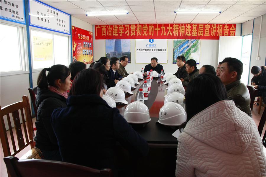 1月17日,公司黨委書記、副總經(jīng)理張濟(jì)璜,組織人事處處長(zhǎng)梁金峰到由工業(yè)設(shè)備安裝工程公司承建的廣西玲瓏輪胎200萬套全鋼主車間工程項(xiàng)目部開展學(xué)習(xí)貫徹黨的十九大精神進(jìn)基層宣講報(bào)告會(huì)。