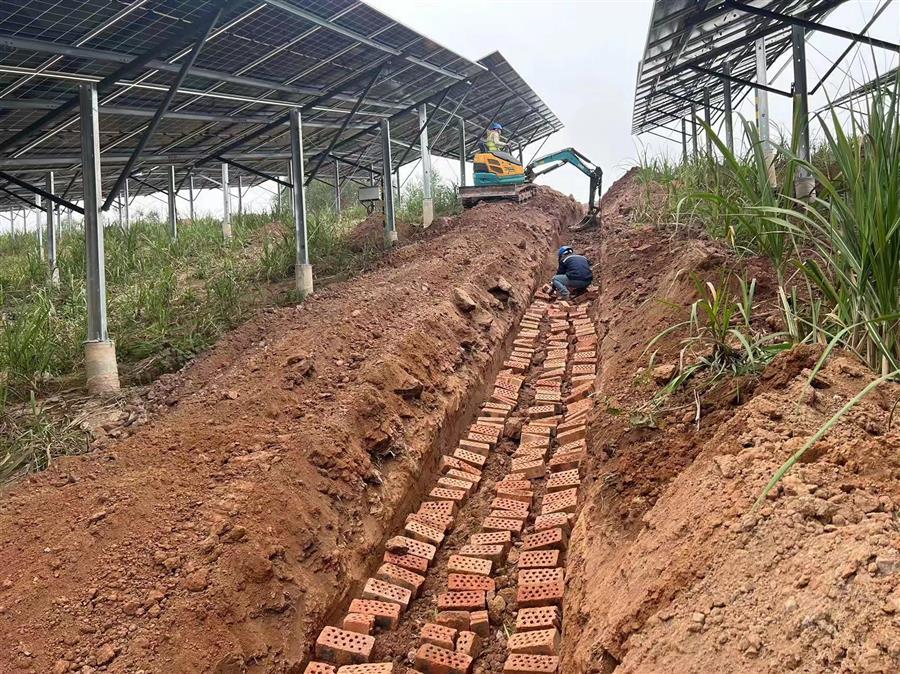 項目規(guī)劃總占地面積1509.9畝,建設(shè)規(guī)模為50MW,該項目的建成將有效助力當(dāng)?shù)禺a(chǎn)業(yè)結(jié)構(gòu)優(yōu)化、節(jié)能減排,促進綠色可持續(xù)發(fā)展。項目已實現(xiàn)節(jié)點并網(wǎng),現(xiàn)階段主要圍繞電纜敷設(shè)、溝槽開挖、接地網(wǎng)敷設(shè)、圍欄安裝開展工作。當(dāng)前,項目支架安裝完成66.32%,組件安裝完成66.32%,累計完成產(chǎn)值2270萬元。