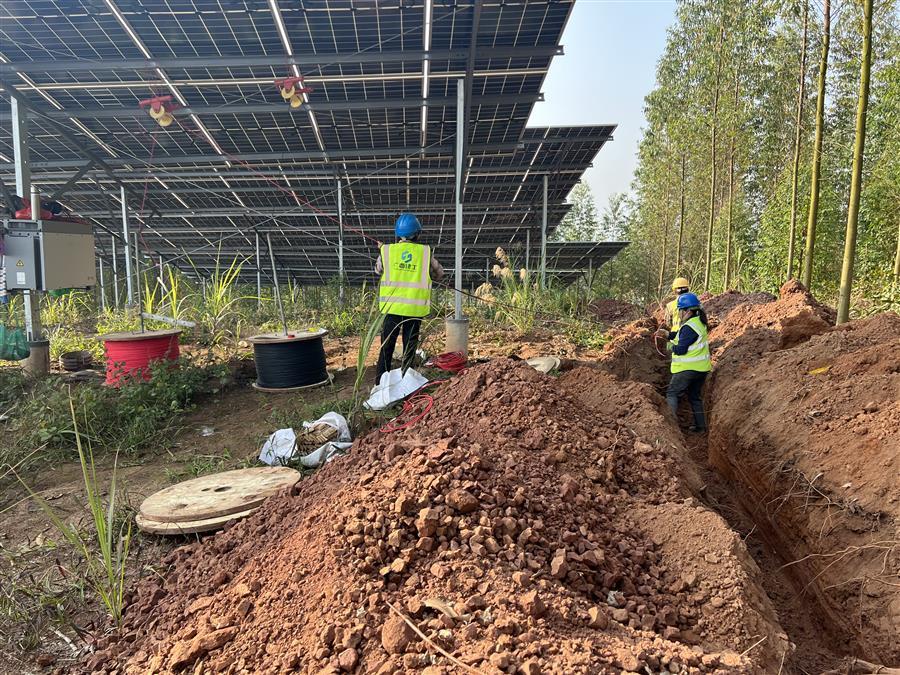 節(jié)后復(fù)工復(fù)產(chǎn)以來,項目接地網(wǎng)開挖敷設(shè)完成1235米,低壓電纜敷設(shè)完成1285米,光伏專用電纜敷設(shè)完成14760米,圍欄安裝1030米。