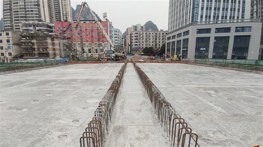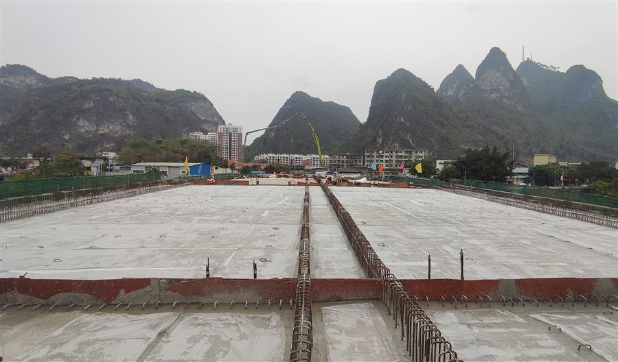 4月3日,冶建公司桂金分公司承建的河池市龍江六橋(輝樂橋)工程順利完成拱上箱梁結構頂板混凝土澆筑施工任務,主體橋面實現(xiàn)全幅貫通。