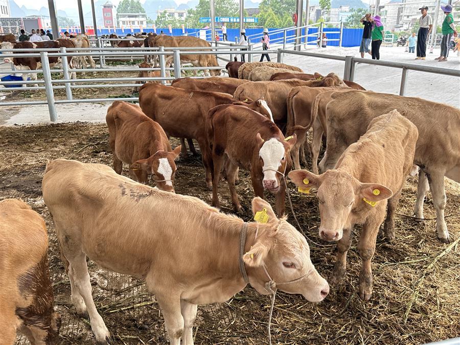 活動(dòng)現(xiàn)場,熱鬧非凡,大家參觀了農(nóng)特項(xiàng)目園區(qū)及桂中牛行,并對(duì)園區(qū)今后的發(fā)展提出了意見和建議。桂中牛行作為農(nóng)特項(xiàng)目園區(qū)內(nèi)的首個(gè)主力商家,主營活牛羊交易,副營馬、驢、騾子等草食動(dòng)物交易。試業(yè)當(dāng)天,牛群“哞哞”聲此起彼伏,一頭頭體格健壯的牛兒一字排開,人們?nèi)宄扇旱貒墼谝黄穑屑?xì)挑選著心儀的牛兒。一旁的牛崽交易市場內(nèi),買家更是爭相搶購體態(tài)良好的牛崽,市場交易紅火。