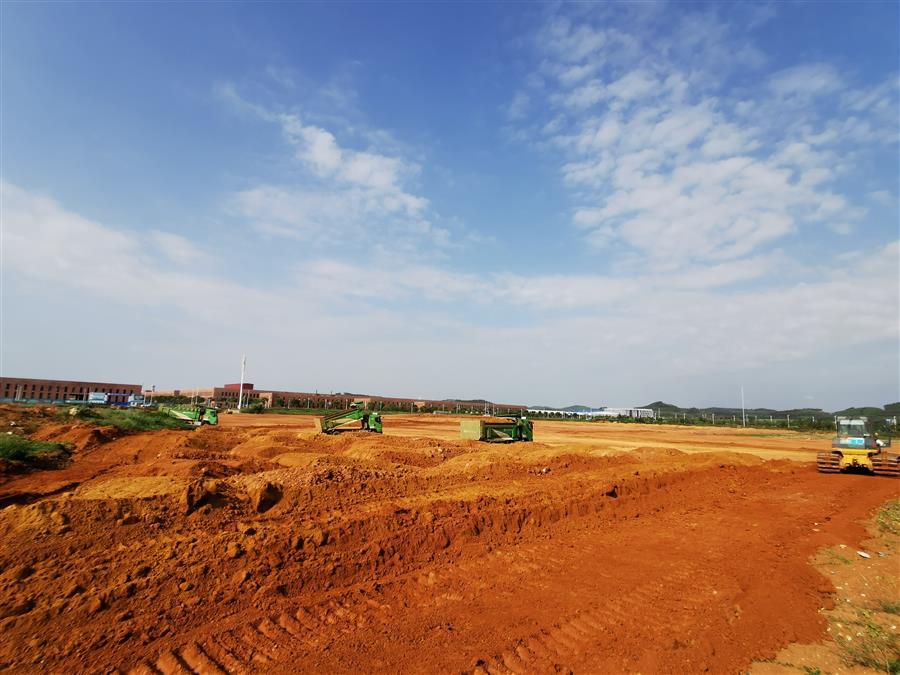 新能源汽車配套產(chǎn)業(yè)園A區(qū)工程總承包項(xiàng)目開展廠區(qū)地基土方回填。