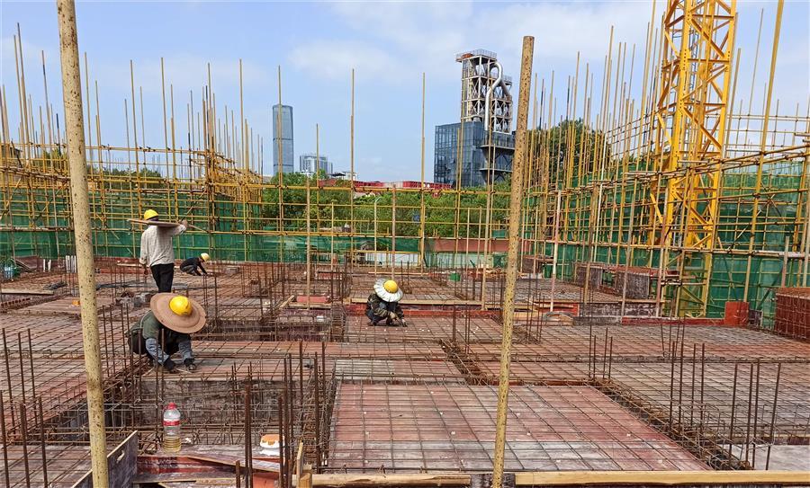 柳州市第三棉紡織廠集資建房項(xiàng)目36#樓、37#樓、38#樓、公廁及垃圾收集點(diǎn)項(xiàng)目,工人正在進(jìn)行綁扎鋼筋和搭設(shè)腳手架。