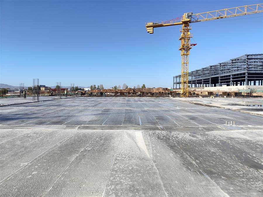 目前,項(xiàng)目2號(hào)冷庫地下室滿堂架搭設(shè)完成100%,地下室模板安裝完成90%,地下室頂板鋼筋綁扎完成60%,地下室頂板混凝土澆筑30%。2號(hào)配送中心鋼結(jié)構(gòu)檁條安裝完成100%,樓承板完成95%,連續(xù)梁鋼筋完成100%,連續(xù)梁混凝土澆筑完成70%。2號(hào)研發(fā)中心CFG樁樁間土開挖樁頭破除100%。