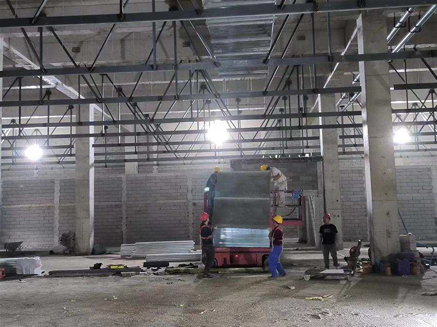 目前,項(xiàng)目1#聯(lián)合廠房鋼結(jié)構(gòu)轉(zhuǎn)換層焊接安裝已完成70%;消防管道安裝完成60%;墻體砌筑及二次結(jié)構(gòu)施工完成90%;內(nèi)外墻抹灰完成40%;暖通管道制作、安裝完成30%;屋面保溫層完成80%。