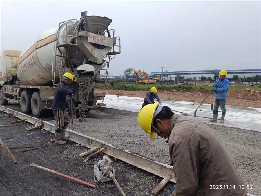 河西物流園路網(wǎng)工程—經(jīng)一路、經(jīng)六路項(xiàng)目現(xiàn)場,工人們正在緊張有序地開展各項(xiàng)工作,項(xiàng)目部積極協(xié)調(diào)解決施工現(xiàn)場出現(xiàn)的各類困難,全力保障工程穩(wěn)步開展。目前,項(xiàng)目進(jìn)度已完成40.9%,經(jīng)一路部分施工用地為從和平路至百飯路的700米,現(xiàn)已完成其中300米的砼道路施工,其余400米施工至第二層水穩(wěn);電力管溝施工、鐵塔與電纜均已完成安裝。
