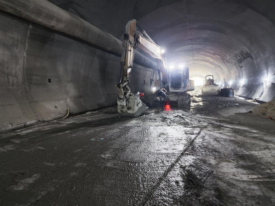 在施工現(xiàn)場,機器轟鳴,挖掘機正在對隧道明洞部分的土方進行開挖,出渣車有序作業(yè)外運渣土;工人們正有條不紊地焊接、搭建地連墻鋼筋籠;在隧道深處,一臺挖掘機在操作人員的操控下,正揮動著“手臂”,配合著工人在對隧道路面做清理。“為加快項目施工進度,我們采取人員倒班、設(shè)備不停,白天晚上不間斷施工?!表椖拷?jīng)理介紹說,目前隧道工程已全面貫通,爭取在春節(jié)前完成仰拱和墻供二襯砼澆筑。