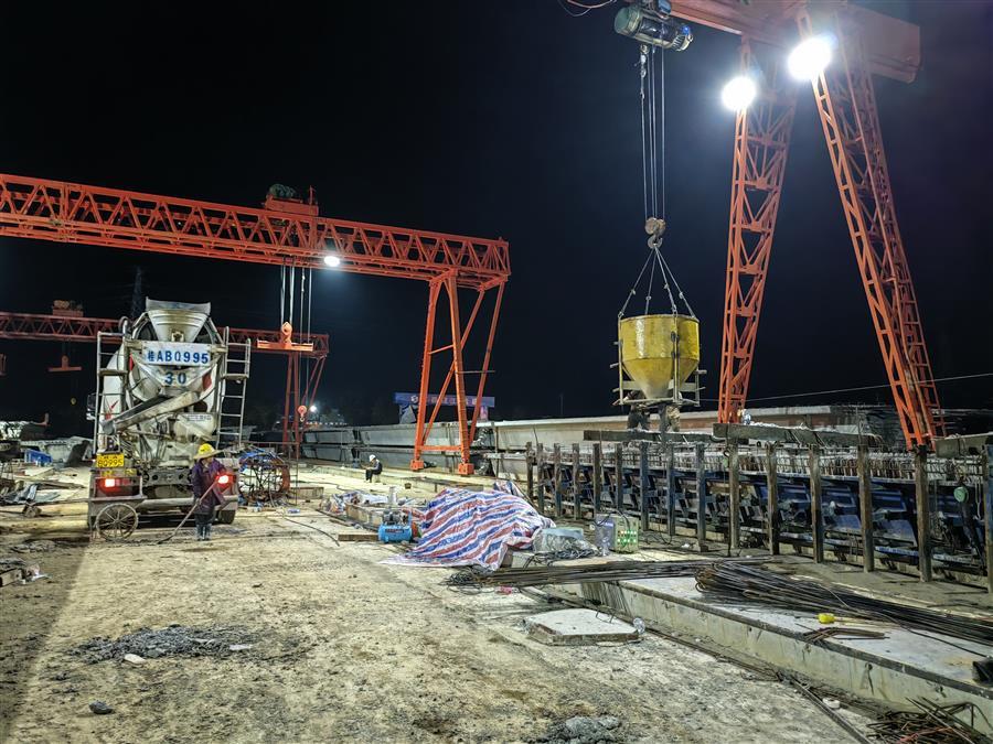 近期天氣狀況多變,部分施工場(chǎng)地需要復(fù)墾,影響施工進(jìn)度。面對(duì)困難和挑戰(zhàn),項(xiàng)目部嚴(yán)格按照施工方案,結(jié)合現(xiàn)場(chǎng)實(shí)際情況,通過精心組織技術(shù)交底,科學(xué)部署,發(fā)揚(yáng)“5+2”“白加黑”連續(xù)作戰(zhàn)精神,全力以赴推進(jìn)項(xiàng)目建設(shè)。截至目前,該項(xiàng)目累計(jì)完成樁基礎(chǔ)澆筑184根、橋梁上構(gòu)預(yù)制梁澆筑136片、橋梁下構(gòu)澆筑完成22道地系梁、50根墩柱和18片蓋梁、2個(gè)橋臺(tái),完成路基回填土5萬方。