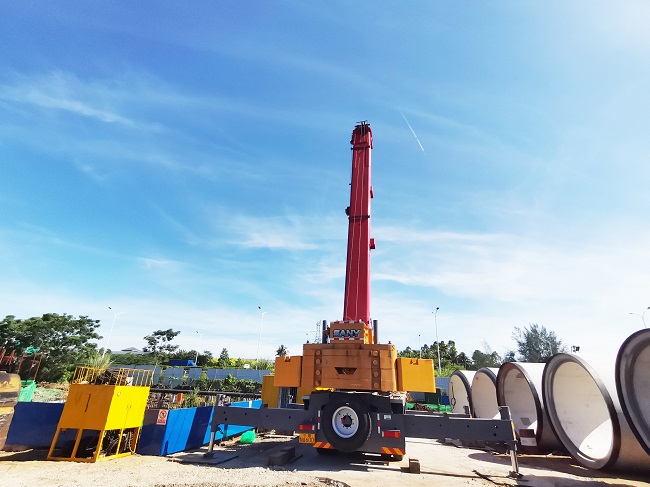 觀瀾湖北區(qū)區(qū)外排水工程(PG3 線)項(xiàng)目位于海南省??谑杏^瀾湖北區(qū),主要建設(shè)內(nèi)容為布置4.79km長(zhǎng)的排水箱涵。項(xiàng)目所處位置的地質(zhì)環(huán)境復(fù)雜,還緊鄰高速公路,工作井靠近魚(yú)塘和高壓電塔,地上管線多,給施工作業(yè)帶來(lái)重重困難和挑戰(zhàn)。為了保證施工質(zhì)量和建設(shè)效率,第三分公司邀請(qǐng)專家精心策劃施工方案、組建精英團(tuán)隊(duì)施工,項(xiàng)目團(tuán)隊(duì)提前規(guī)劃好了運(yùn)輸路線,并與交通部門(mén)緊密協(xié)調(diào),確保了各項(xiàng)準(zhǔn)備工作的周全,為項(xiàng)目建設(shè)順利進(jìn)行奠定了堅(jiān)實(shí)的基礎(chǔ)。