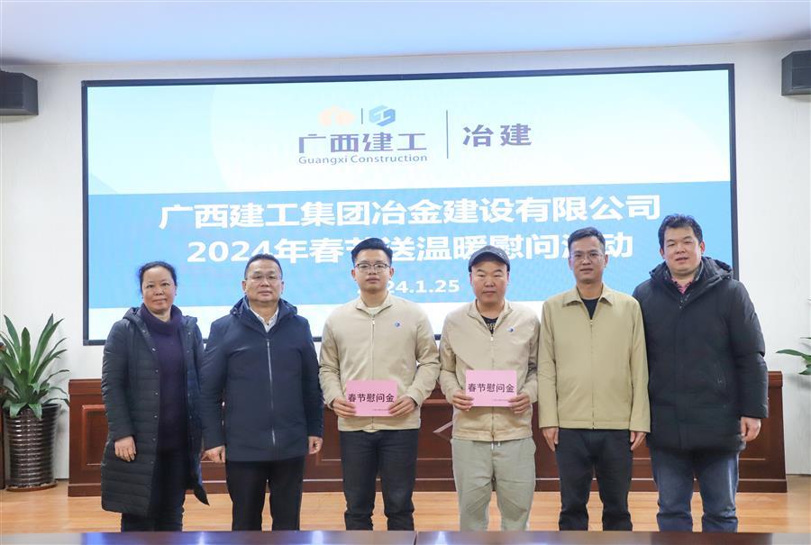 迎新春,送祝福,1月25日,冶建公司黨委書記、董事長覃振華走訪慰問離休干部董德和,基礎(chǔ)分公司困難員工江龍威、黃積軍為他們送去組織的親切關(guān)懷,并送上慰問金和新春的祝福。