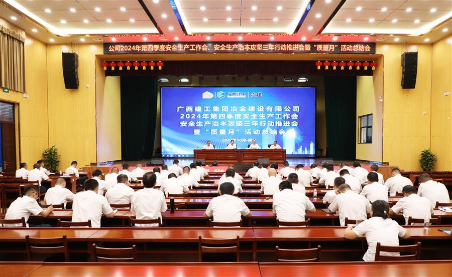 10月10日,冶建公司2024年第四季度安全生產(chǎn)工作會、安全生產(chǎn)治本攻堅(jiān)三年行動推進(jìn)會暨“質(zhì)量月”活動總結(jié)會在禮堂召開。公司總經(jīng)理、黨委副書記蒙勝益參加并講話,副總經(jīng)理、總工程師廖立波,副總經(jīng)理何勇參加,代安全總監(jiān)韋克雪主持。