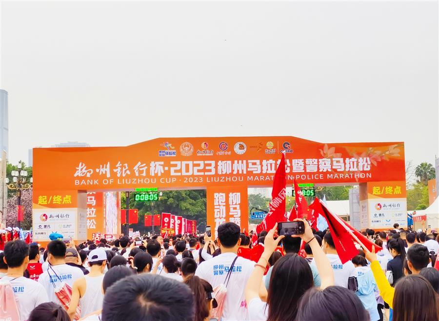 4月9日上午7:30,柳州銀行杯·2023柳州馬拉松暨警察馬拉松在柳州市民廣場鳴槍開跑。上萬名參賽選手用奔跑和速度感受魅力柳州。