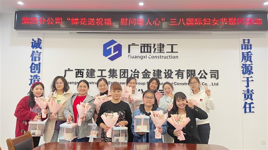 3月8日,冶建公司第四分公司開展“鮮花送巾幗 慰問暖人心”活動(dòng),為女員工送上真摯的節(jié)日祝福和親切的慰問,并為每一位女員工送上精美禮品和代表熱情、溫馨、感謝的康乃馨花束,感謝她們?yōu)楣景l(fā)展作出的貢獻(xiàn)。
